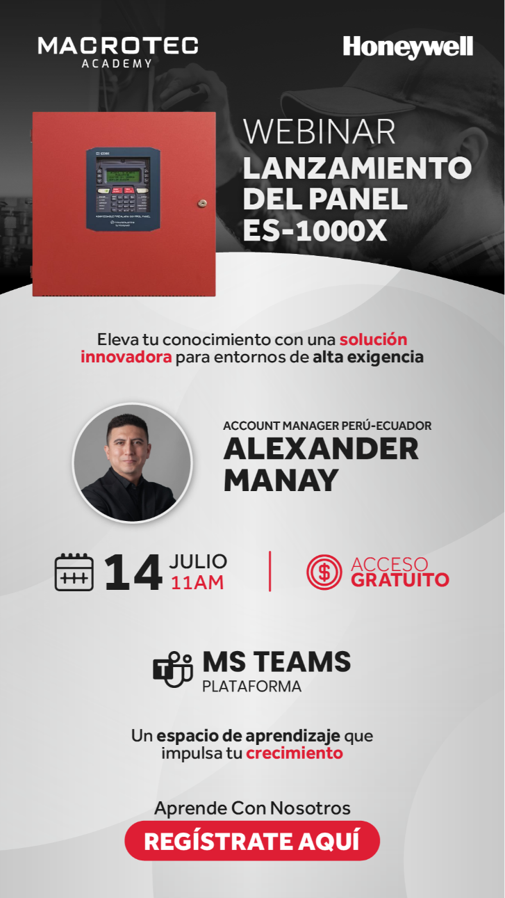 📅 Este Lunes 14 de julio a las 11 am acompáñanos al webinar de lanzamiento del nuevo panel Honeywell ES-1000X, una solución diseñada para entornos de alta exigencia 🔥